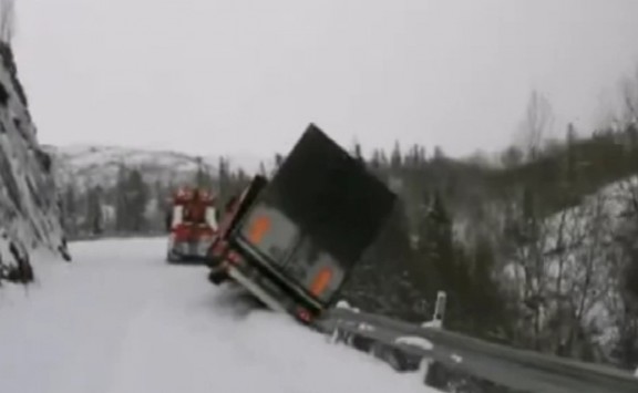 Νταλίκες πέφτουν σε γκρεμό - Σώοι οι οδηγοί - Απίστευτο βίντεο!