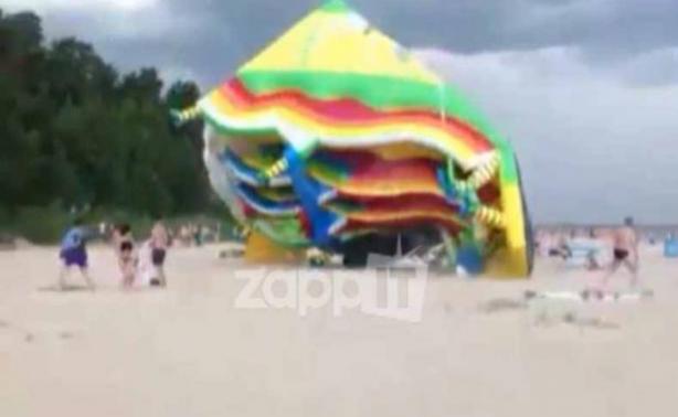Ένας δυνατός αέρας ήταν αρκετός για να τρομάξει όλη την παραλία παρασέρνοντας μια τεράστια φουσκωτή τσουλήθρα!...