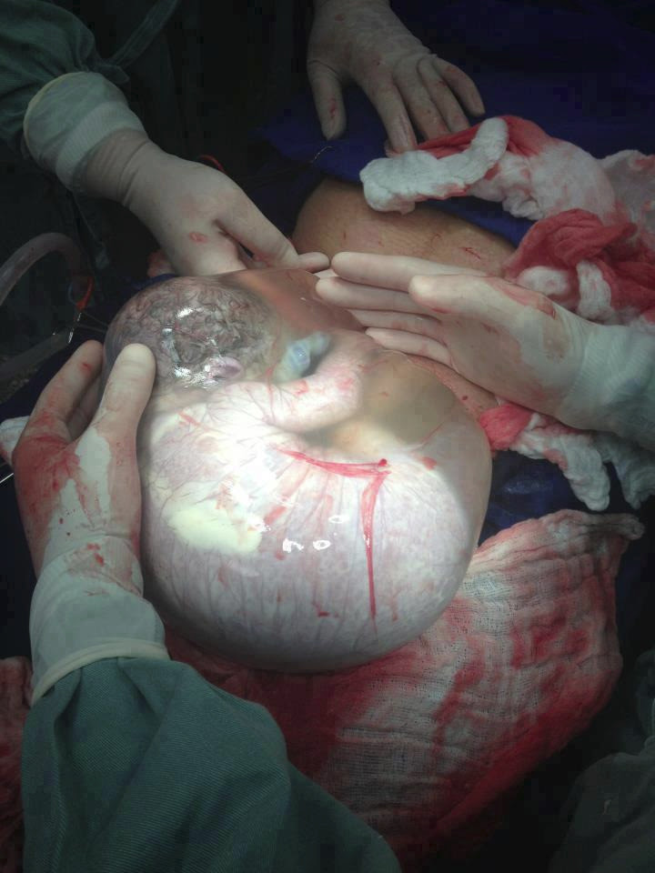 Η γέννα έγινε με καισαρική τομή και οι γιατροί έβγαλαν το μωρό μαζί με τον αμνιακό σάκο ο οποίος έμεινε άθικτος, δίνοντας έτσι τη δυνατότητα να αποτυπωθεί μια εξαιρετικά σπάνια σκηνή.