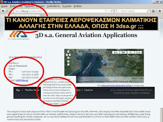 2. Την ιστοσελίδα http://3dsa.gr της εταιρείας 3D S.A. που βρίσκεται στην οδό Σκιάθου 2 στην Θεσσαλονίκη και σε συνεργασία με την αεροπορική βιομηχανία, κάνει αεροψεκασμούς για την τροποποίηση του καιρού της χώρας μας. Η εν λόγω εταιρεία συνάπτει κυβερνητικές(!) συμβάσεις και ελέγχει το κλίμα της Ελλάδας από το 1981, που μέχρι το 2009, έχει κάνει πτήσεις προγραμμάτων τροποποίησης καιρού 4.133 ώρες(!) όπως η ίδια αναφέρει και ρωτούμε: