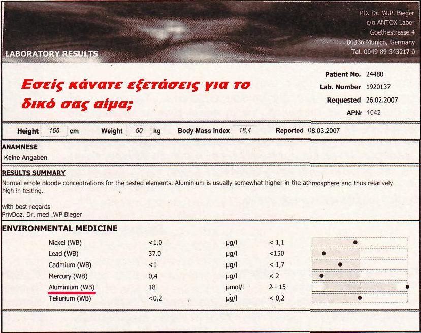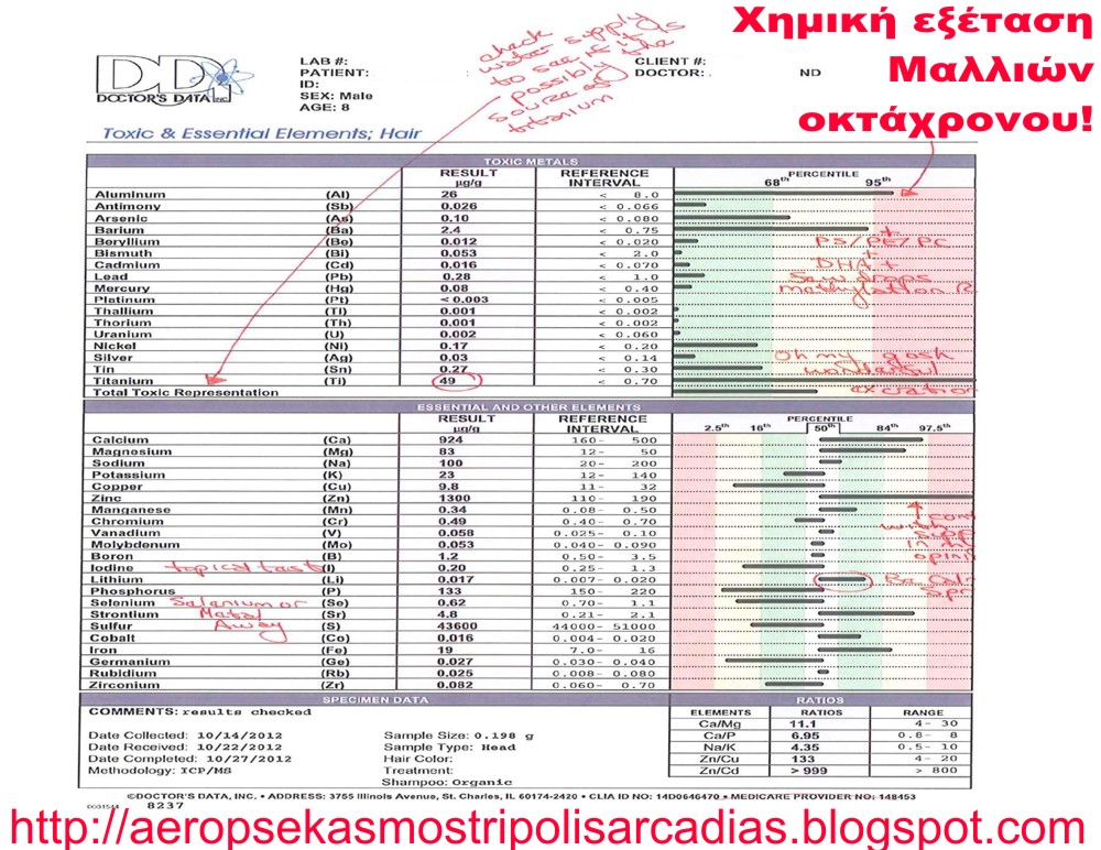 Μιλάνε στο διαδίκτυο επιστήμονες, για υψηλές συγκεντρώσεις αλουμινίου, τιτανίου, βαρίου και άλλων μετάλλων, στο νερό, στο χώμα, στα μαλλιά και στο αίμα(!) των παιδιών μας, έχουν σχέση με τους αεροψεκασμούς που κάνουνε;