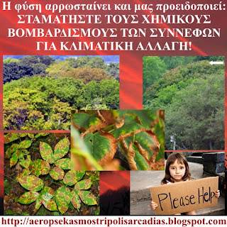 Το τονίζουμε για όσους δεν κατάλαβαν, ότι δεν πρόκειται για μεμονωμένους ψεκασμούς, πχ για τα κουνούπια σε χαμηλά ύψη ορισμένων περιοχών, αλλά για πανελλαδικούς, καθημερινούς, αμέτρητους αεροψεκασμούς, ελέγχου του ΚΛΙΜΑΤΟΣ και της Ελλάδας!!!