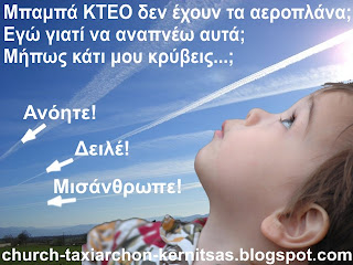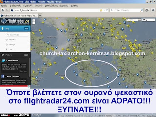 Για δοκιμάστε το site: http://flightradar24.com σπίτι σας, μόλις δείτε να ψεκάζει αεροπλάνο τον ουρανό σας. Θα το δείτε "δηλωμένο" και στο επίσημο χάρτη των πτήσεων; Μάλλον όχι!!!