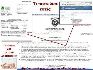 Οι καταστροφές που ζήσανε οι αγρότες μας ή η έλλειψη ηλιοφάνειας, για τους επενδυτές των φωτοβολταiκών, για παράδειγμα, είναι αποτέλεσμα αυτού του βομβαρδισμού των σύννεφων ή απλά τσάμπα σπαταλάτε το χρήμα των Ελλήνων φορολογούμενων, αφού συνέβηκαν και δεν μπορέσαμε να ελέγξουμε;