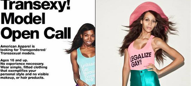 Μία ανατρεπτική καμπάνια ξεκίνησε η εταιρεία ρούχων American Apparel, τραβώντας την προσοχή των μέσων κοινωνικής δικτύωσης. Συγκεκριμένα η Αμερικανική εταιρεία ζητάει διεμφυλικά (τρανσέξουαλ) μοντέλα για τη νέα της καμπάνια.
