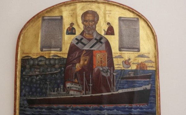 Όπως διαβάσαμε στη μηχανή του χρόνου η αγιογραφία αυτή έκανε γνωστή σε ένα μικρό κύκλο ανθρώπων την ιστορία του πλοίου και στην συνέχεια διαδόθηκε μέσα από την επιστολή-ντοκουμέντο του καπετάνιου προς τον ιδιοκτήτη του πλοίου, Ιωάννη Γερολυμάτο. Το φορτηγό πλοίο «Κεφαλλονιά» ταξίδευε το 1948 στον Ειρηνικό Ωκεανό. Ξεκίνησε από την Σιγκαπούρη για την πόλη Κομπέ της Ιαπωνίας, όταν έπεσε μέσα στην δίνη ενός τροπικού τυφώνα….