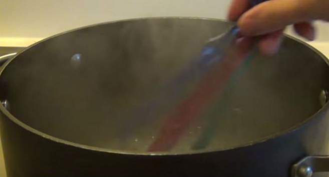Όπως θα δείτε και εσείς, αφαιρεί τις ίνες και στη συνέχεια τις βουτάει μέσα σε μια κατσαρόλα με βραστό νερό. Χρησιμοποιώντας μια πιρούνα και φορώντας γάντια, βγάζει μετά από λίγα λεπτά τις οδοντόβουρτσες και τους δίνει το σχήμα που επιθυμεί, φτιάχνοντας απίστευτα βραχιόλια για το χέρι!