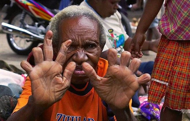 Τα μέλη της φυλής Dani από την Παπούα, στην Ινδονησία, κόβουν τα δάχτυλά τους για να δείξουν τη θλίψη τους στις τελετές κηδειών των αγαπημένων τους προσώπων. Μαζί με τον ακρωτηριασμό, αλείφουν επίσης στα πρόσωπά τους με στάχτη και πηλό για να εκφράσουν την θλίψη τους.
