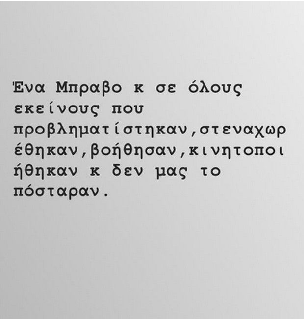 «Ένα μπράβο και σε όλους εκείνους που προβληματίστηκαν, στενοχωρήθηκαν, βοήθησαν, κινητοποιήθηκαν και δεν μας το πόσταραν» έγραψε η Ελεονώρα Μελέτη θέλοντας να ευχαριστήσει τους δεκάδες αφανείς εθελοντές και όχι μόνο που βρέθηκαν από την πρώτη στιγμή στο πλευρό των πυρόπληκτων. Και ήταν, ευτυχώς, πολλοί».