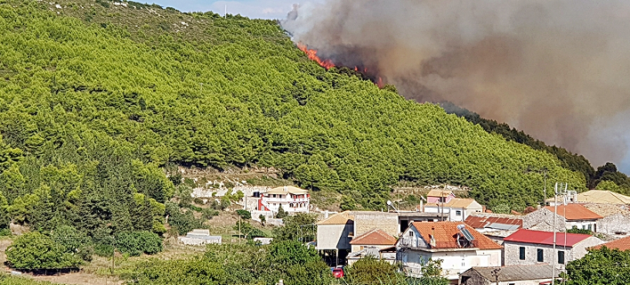 Μάχη με τις φλόγες θα δίνουν όλη τη νύχτα οι πυροσβέστες στη Ζάκυνθο, στις δύο μεγάλες πυρκαγιές που ξέσπασαν στα χωριά Κοιλιωμένος και Μαχαιράδο, καίγοντας δασική έκταση.