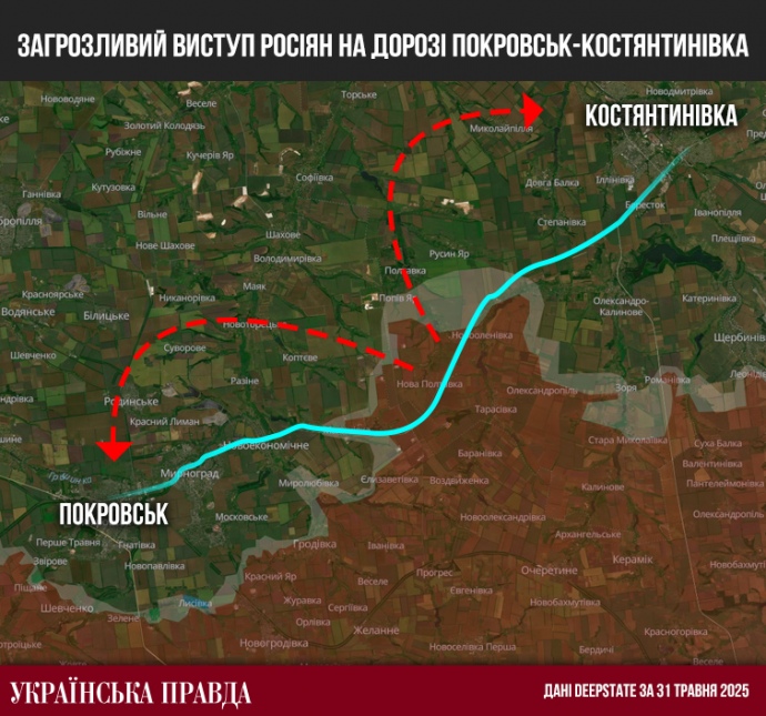 Οι Ρώσοι διέσπασαν τον δρόμο Ποκρόφσκ-Κωνσταντίνοβκα στην περιοχή Μαλινίβκα-Νόβαγια Πολτάβκα-Νοβολενίβκα και σχημάτισαν ένα απειλητικό προεξέχον σημείο – μήκους άνω των 10 χιλιομέτρων και περίπου του ίδιου πλάτους. Βρίσκεται σε ίση απόσταση από το Ποκρόφσκ και την Κοστιαντίνιβκα, επομένως φέρει τον κίνδυνο ρωσικής επίθεσης σε αυτές τις δύο πόλεις ταυτόχρονα.