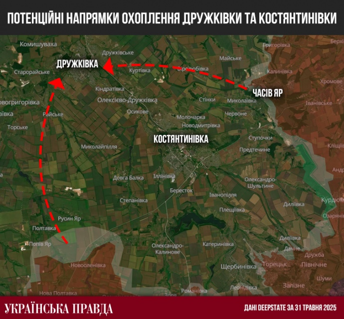 Δυνητικά, όπως υποδηλώνουν οι συνομιλητές του ουκρανικού Υπουργείου Άμυνας από τον στρατό στην κατεύθυνση του Κραματόρσκ, αυτή η επίθεση θα μπορούσε να εξελιχθεί σε μια περαιτέρω κίνηση των Ρώσων προς τα βόρεια και στην κατάληψη μιας άλλης μεγάλης πόλης - της Ντρούζκιβκα. Αυτή θα είναι μια δυτική «νύχι» που θα περικυκλώσει την Κοστιαντίνιβκα και την Ντρούζκιβκα, ενώ ο εχθρός θα σχηματίσει μια ανατολική, προελαύνοντας από το Τσάσοβι Γιαρ.