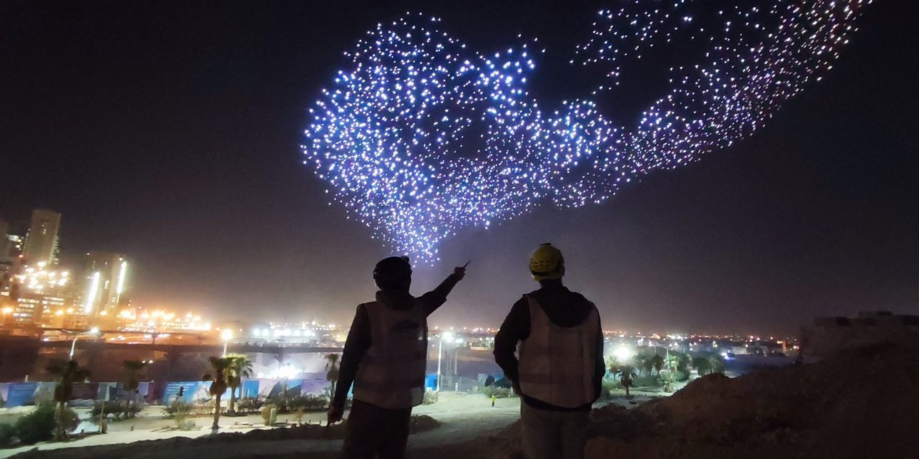 Οι επιδείξεις με drones γίνονται όλο και πιο εξελιγμένες, εξηγεί, με μερικές drone shows να περιλαμβάνουν χιλιάδες ιπτάμενα μηχανήματα, που τους επιτρέπουν να αναπαράγουν φιγούρες ή μοτίβα με απίστευτη λεπτομέρεια.