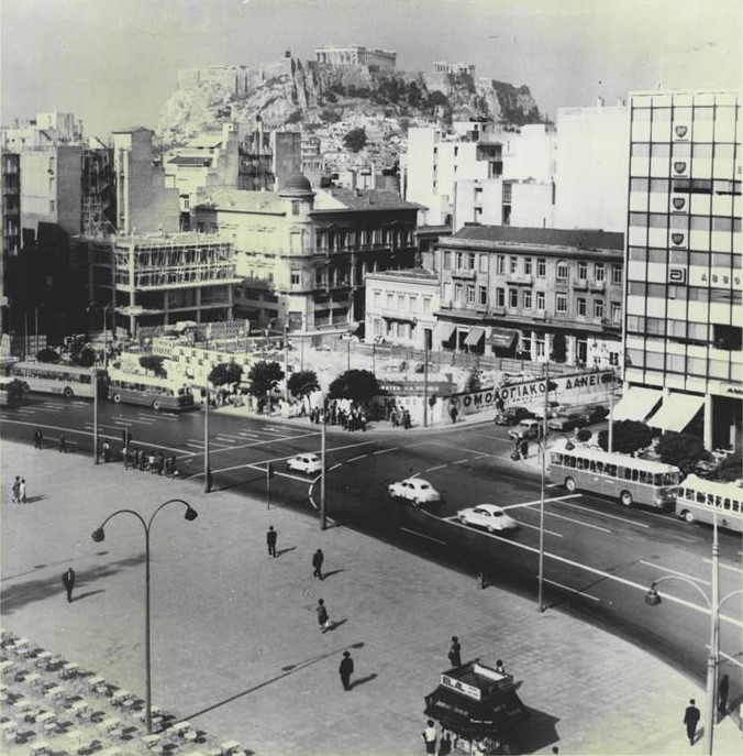 Στη φωτογραφία που έχει τραβηχτεί την δεκαετία του 1960 βλέπετε την πλατεία Συντάγματος.